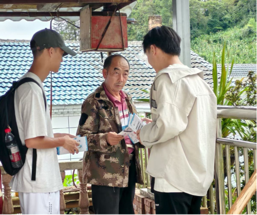 队伍抵达马家湾村镇,利用休整间隙,实践团成员紧密协作,将爱国热情与科技知识转化为服务边疆群众的实际行动,他们结合当地实际,开展了中医药科普宣传活动,耐心向村民讲解常见中草药的辨识、功效及日常保健应用,将传统医药的智慧送入边寨。同时积极履行社会责任,向村民发放禁毒防艾宣传手册,进行通俗易懂的知识讲解,引导村民树立科学健康的生活理念,为筑牢边境健康防线贡献青春力量。村民们的热情回应和认真聆听,让队员们真切感受到了服务基层的价值。