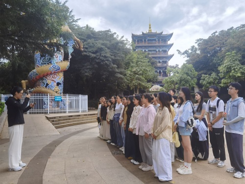 在革命烈士纪念碑前,全体党员肃立默哀,深切缅怀为民族独立和人民解放事业英勇献身的革命先烈。讲解员讲述了罗彩、张天虚等烈士的事迹以及云南人民在抗战中作出的不可磨灭的贡献。适逢中国人民抗日战争暨世界反法西斯战争胜利80周年,大家共同回顾了那段烽火连天的岁月,深刻认识到中国作为东方主战场的历史地位和伟大意义。、