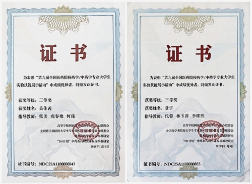 此次两位同学双双获奖,是我校药学/中药学专业教学质量、实践教学改革成果和优良学风的集中体现。近年来,我校始终坚持“立德树人”根本任务,高度重视学生实践能力和创新精神的培养,不断加大实验教学投入,深化教学改革,为学生成长成才搭建了广阔平台。同时,在比赛过程中也发现了与其他获更高奖项的参赛学子的差距,希望全校同学能勤学笃行,追求卓越,在求知的道路上不断攀登新的高峰。未来,学校将继续坚持以生为本,深化教育教学改革,为培养更多高素质、创新型的药学/中药学英才而不懈奋斗!