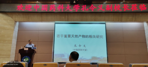 (云中讯 李媛 徐雅静 刘鶠霜)4月2日下午,由中药学院承办的学术交流活动在翰墨楼举行。特邀请中国药科大学孔令义副校长进行“若干重要天然产物的相关研究”专题讲座。讲座开始前,我校校长熊磊接待了孔令义教授,双方就科研方面工作交换了意见。讲座由副校长钱子刚主持,中药学院全体师生员工听取报告。