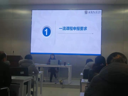 云中讯(通讯员 谢金龙)12月23日,中药学院邀请安徽中医药大学药学院院长桂双英到和合楼315报告厅开展国家级一流课程建设与申报辅导讲座。讲座由中药学院副院长王文静主持,各教研室主任、参与一流课程建设与申报的教师参加。