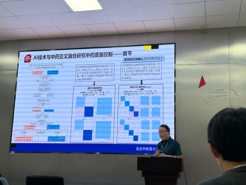 折改梅教授以莪术、郁金、黄芩等为例,详细介绍了如何利用AI技术进行中药质量控制。她还介绍了如何利用核磁计算研究中药物质基础,以白芨五味子颗粒为例,深入解析了中药物质基础的复杂性和多样性。折改梅教授还就研究中应用的神经网络、量子化学计算、聚类、回归拟合等多种AI技术手段展开了详细介绍。