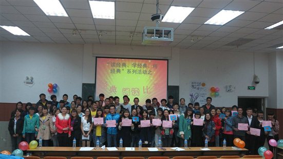 为了传承中医经典文化精髓、提升同学们的鉴赏领悟能力、引领回归经典风尚,2014年11月24日晚,药学院团委学生会学习学术部举办了云南中医学院第二届“读经典,学经典,用经典”系列活动之“经典诵读”之药学院选拔赛,与会人员主要有校团委杨永坚老师,药学院杨啸老师,药学院团委学生会主席崔国徽、副主席马春莉、主席助理张东兴、学习学术部部长赵亚,学生会全体成员及药学院各班级代表。