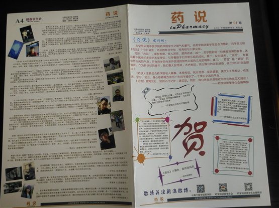 《药说》由药学院团委学生会编辑部全体成员尽心尽力完成,旨在展示药学院师生的良好风貌,同时提供给大家一个交流学习的平台。会上,药学院团委书记李甲英老师首先祝贺药学院院刊《药说》的成功发行。随后,药学院团委学生会编辑部部长王雅琪向大家简要介绍了《药说》的含义:《药说》取药学院的“药”字,不仅代表药学院,同时它的谐音也是“要说”,要说药学院生活、学习、就业等各方面信息,主要包含了名人趣事、本草传说、就业信息、英语盛宴、美文天下等板块,内容非富多彩,充分展示了药学院的精神风貌。