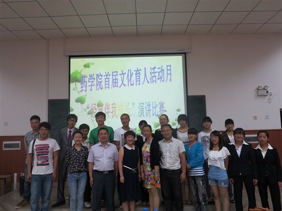 (通讯员 王云蕊) 2013年4月24日18:00—20:30,药学院团委学生会学习部在弘毅楼1308教室举行了药学院首届文化育人月之“经典伴我成长”演讲比赛决赛。出席此次演讲比赛的嘉宾评委有院办浦仕通老师、实验中心王礡老师、药学院杨丽霞老师、药学院王梅老师以及药学院各班级代表。