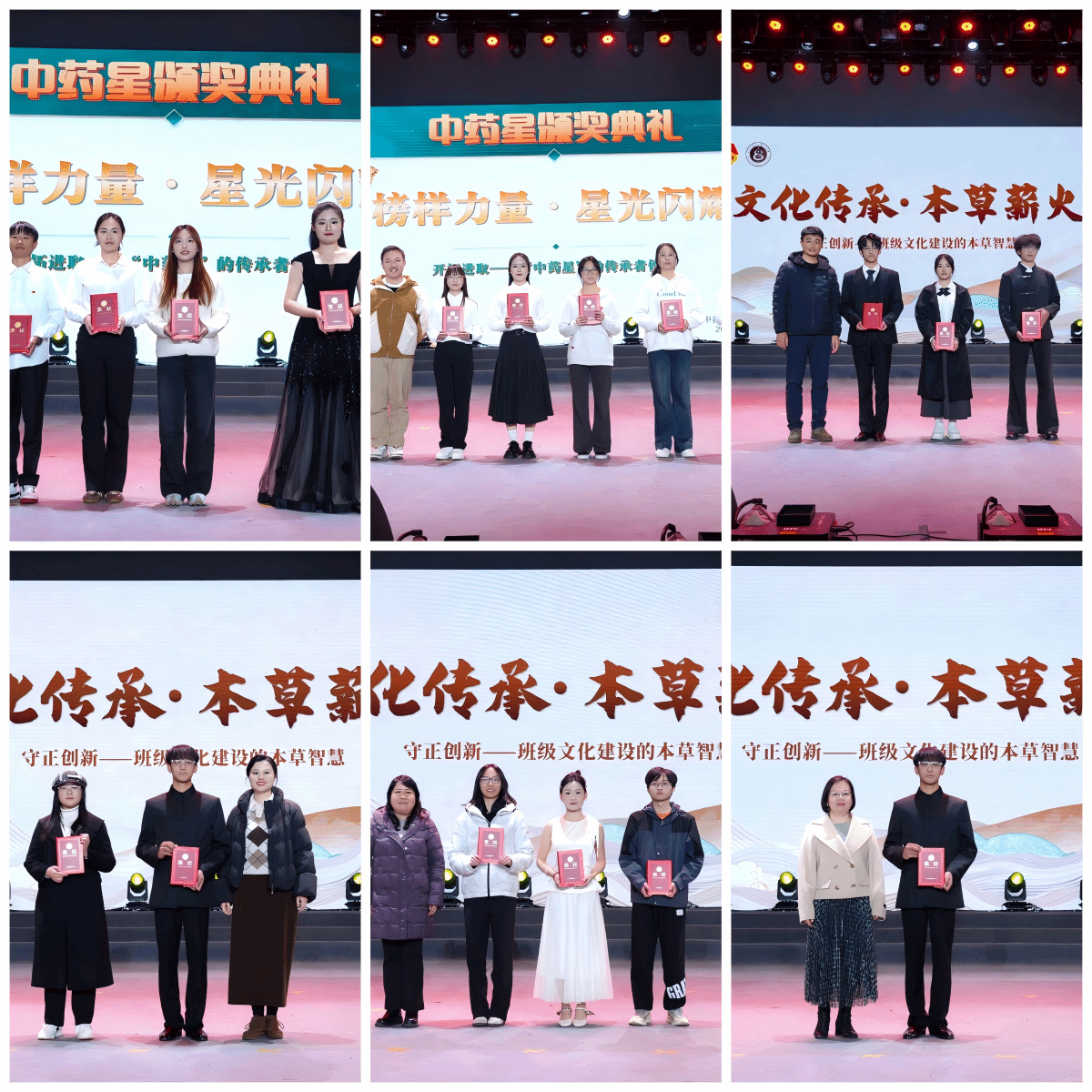 活动第二个环节:榜样力量 星光闪耀——“中药星”表彰及班级文化建设颁奖仪式。授予张青青、廖梦琪、梁宇奇、李燕、熊逍然5位“闪耀新星奖”,张森“创新创意奖”,黄蕊“勤耕不辍奖”,李先淇静“益路繁星奖”,王美霞“德才兼备奖”,郑泰雄“砥志研思奖”。他们以蓬勃朝气绽放青春光彩,用昂扬姿态诠释逐梦热忱;他们持之以恒、精益求精、默默耕耘,也敢想敢为、勇于创新。