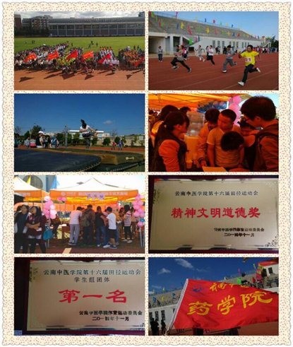 (通讯员 李海英)2014年11月6日到8日,药学院全体师生参加了我校第十六届田径运动会,大家积极参与、奋勇拼搏,为药学院争光争彩,最终药学院捧回了“学生组团体第一”和“精神文明道德奖”两块奖牌。