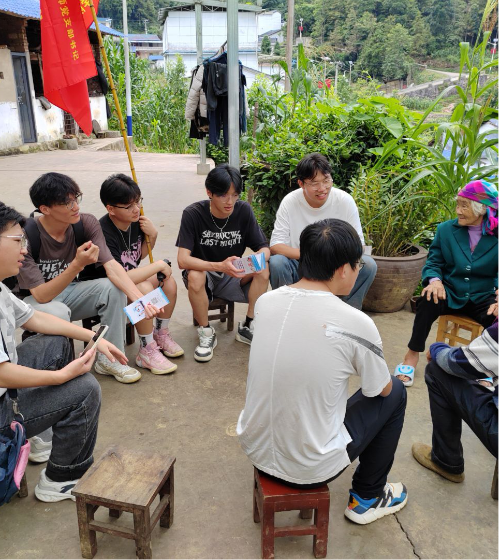 下午,团队奔赴茨竹坝村了解当地村民对中医药的认知。开展入户调研活动。通过入户访谈发现,村民对本地草药资源利用率不足。队员们随即开设“移动课堂”,用采样植物现场讲解周边道地药材的辨识要点与家庭应用,让村民了解到后山的‘野草’是治病宝贝!